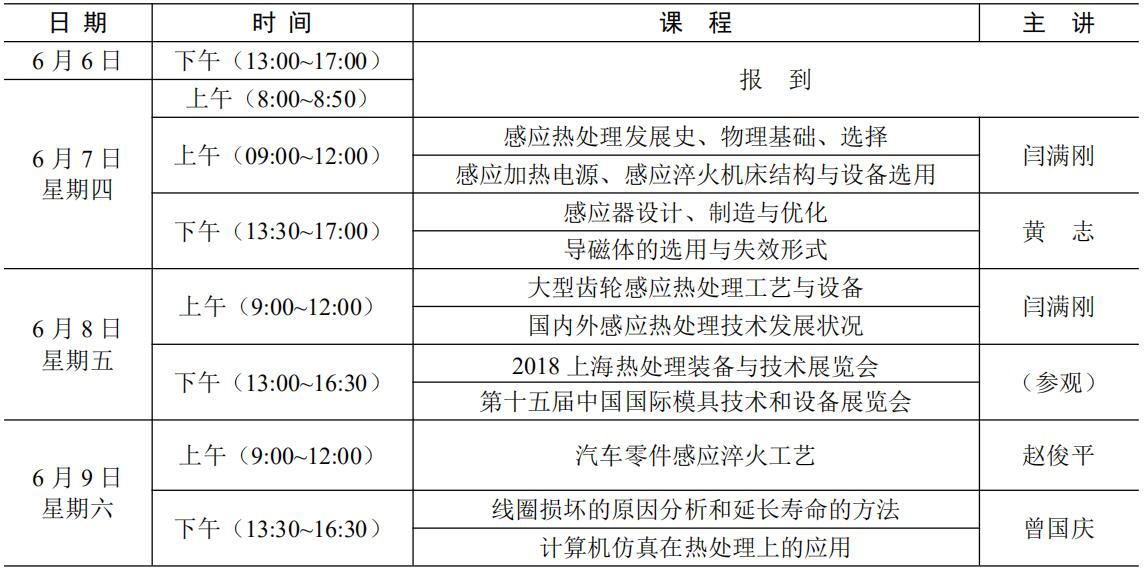 为了进一步提高企业技术人员的业务素质,促进热处理行业的技术进步,提高制造产品的质量水平,增强企业的竞争实力,为制造业的发展做出更大的贡献。感应热处理以节能、环保、柔性化等优势,得到各行各业的广泛应用。为此,我会决定于2018年6月7-9日在上海举办第三期感应热处理技术培训及研讨会,上海交通大学、北京机电研究所有限公司协办,现将有关事宜具体通知如下: